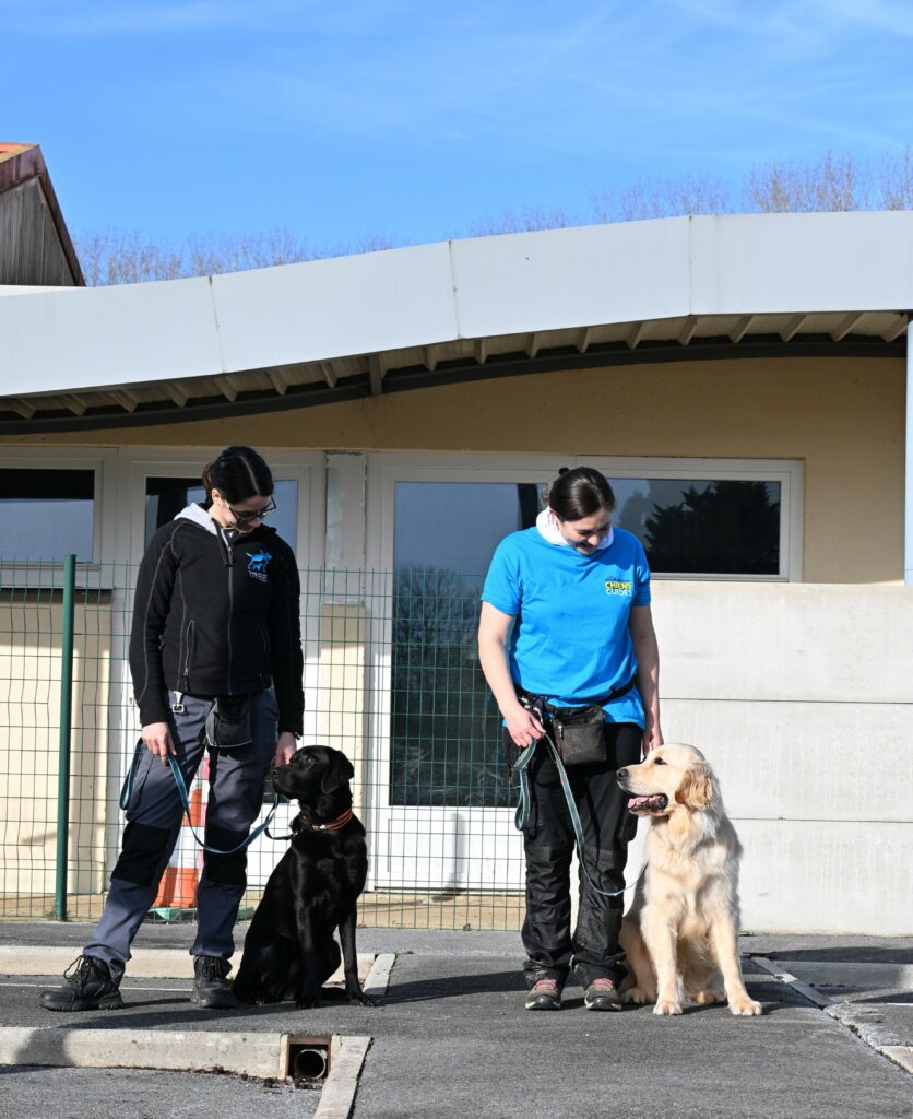 Si la réponse est positive, commence alors plusieurs mois d’éducation spécialisée. Marche au harnais, évitement d’obstacles, arrêts sécurisés… Chaque apprentissage vise un objectif : préparer un chien fiable, capable d’accompagner une personne vers plus d’autonomie.